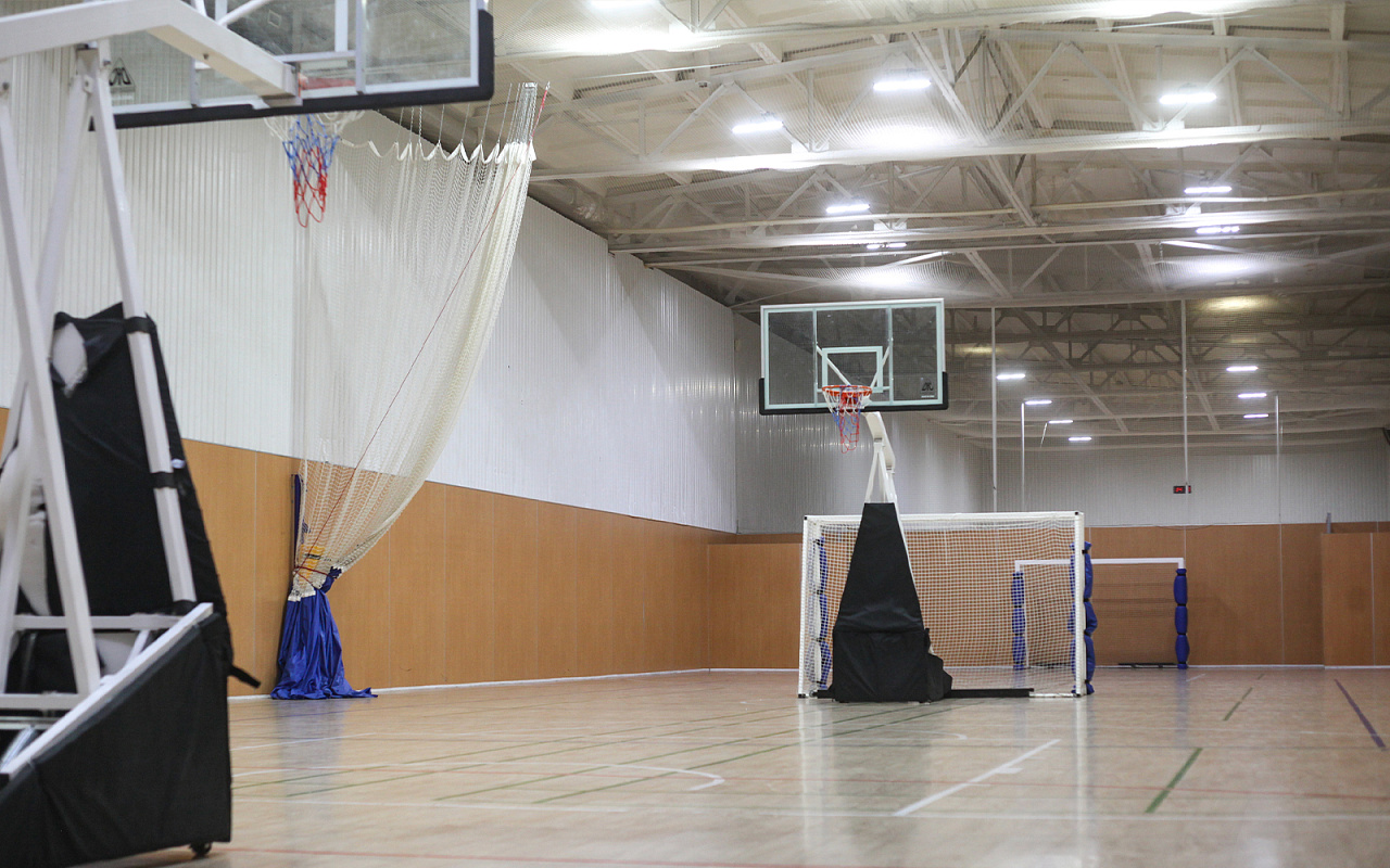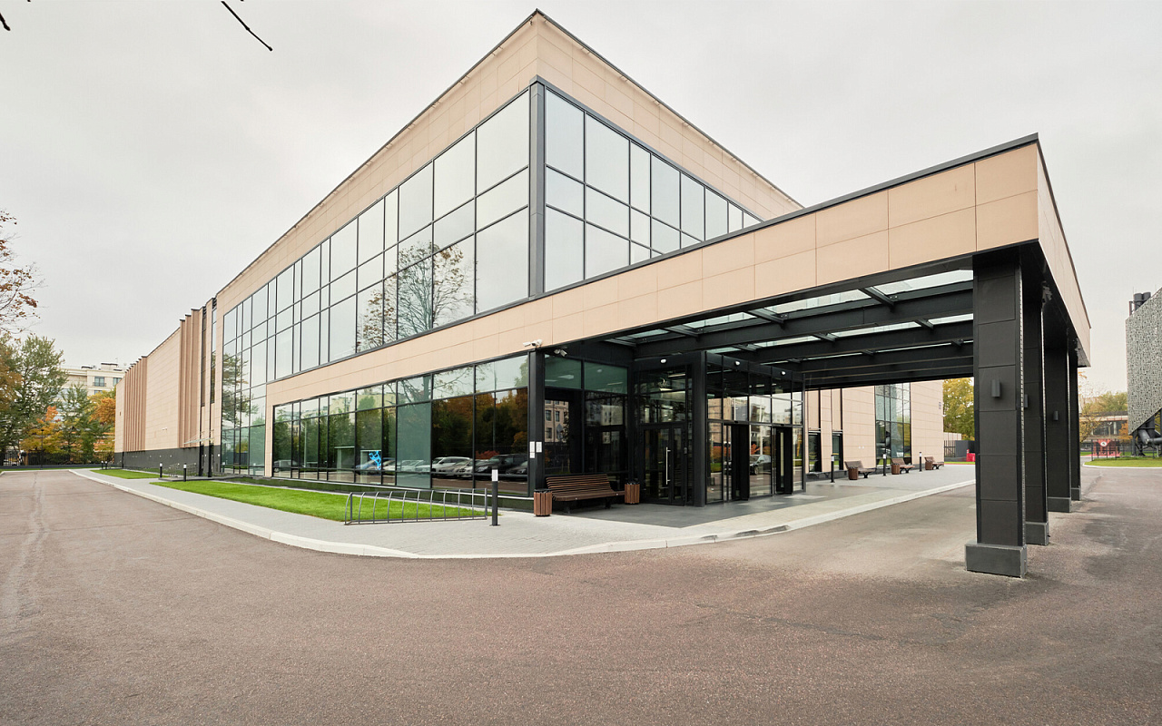 На территории вокруг комплекса — футбольное поле (летом), два открытых катка (зимой), теннисный корт, площадка для пляжного волейбола, беговая дорожка, зона с уличными тренажерами, детская площадка, парковка.